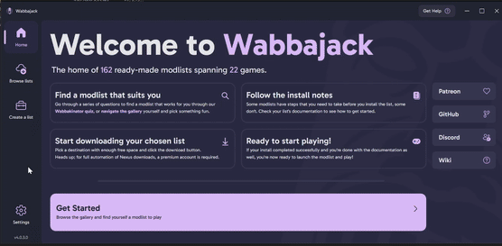 - Wabbajack will automatically open after the install. Click the gear icon (Settings) on the bottom left, then logon to Nexus Mods. Even if you’re already logged in, log out and log back in. Otherwise your mods will all fail to download.