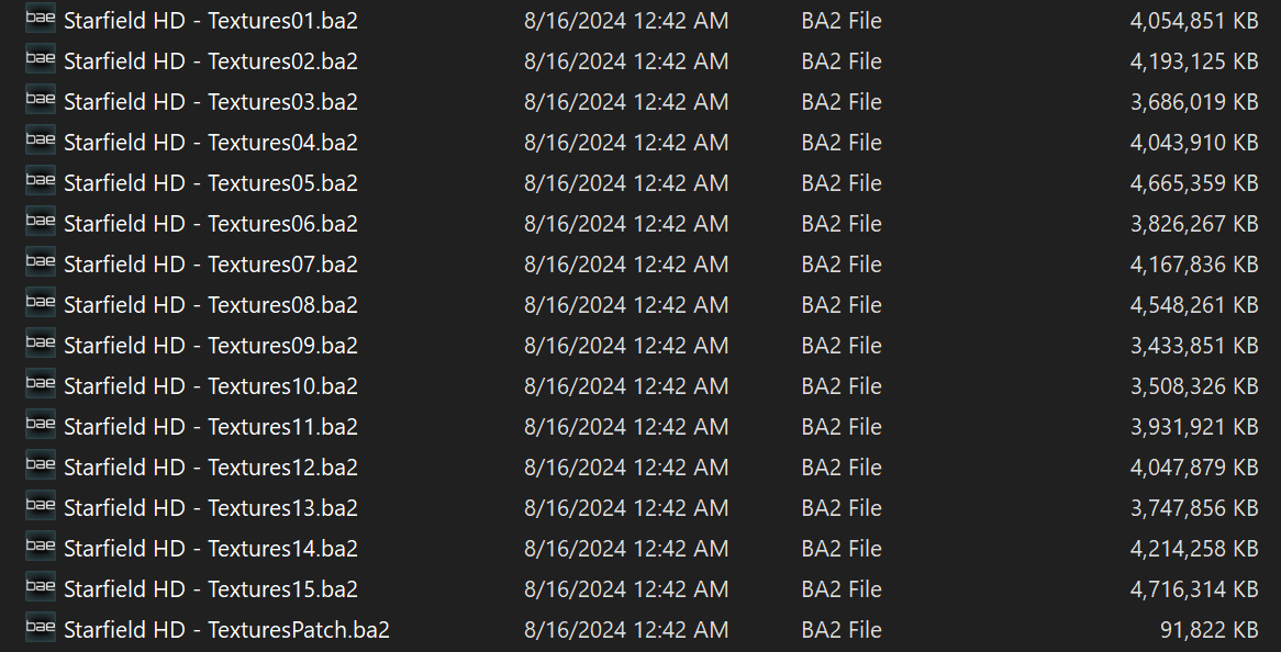 This amounts to 100+ GB of 2-4K textures and will lead to performance issues if you have a weak PC. MANUALLY DOWNLOAD these files and put the BA2 inside each archive in the steamapps\common\Starfield\Data folder.